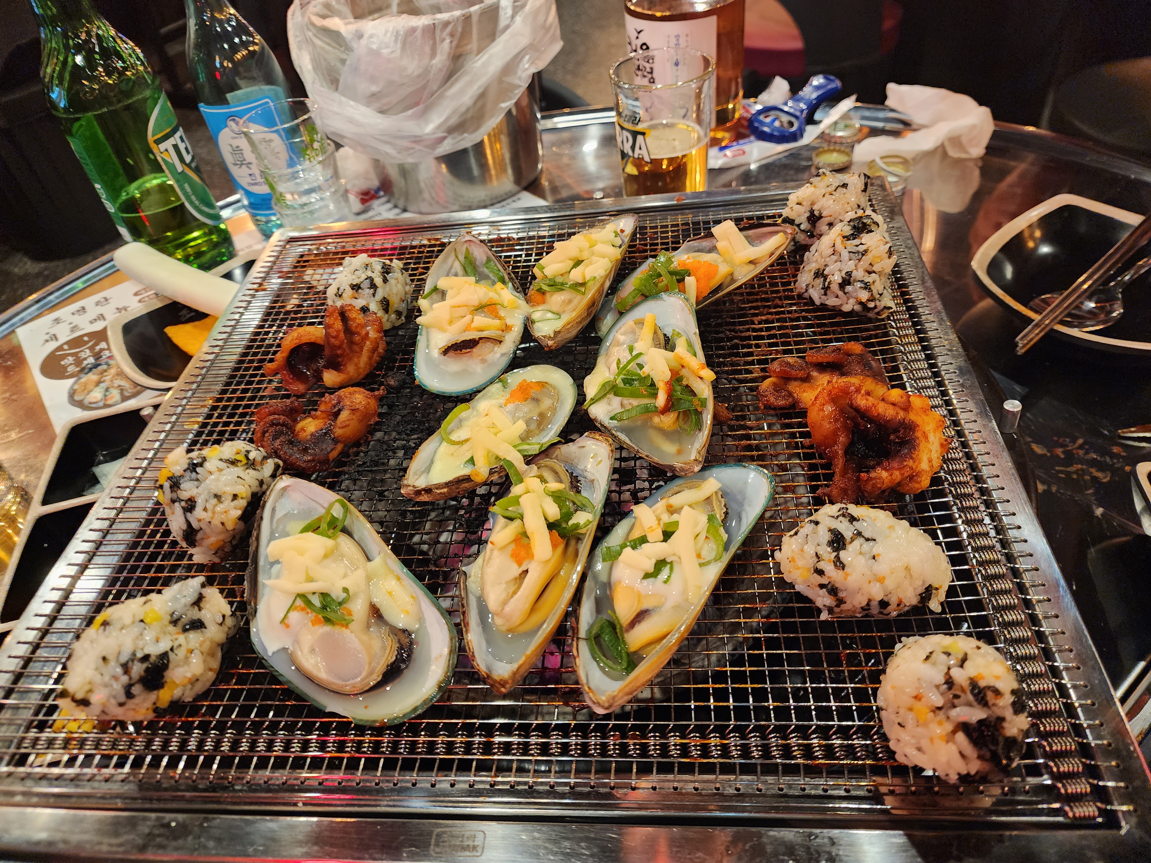 그래서 이렇게 두번재 그린홍합구이가 나올때 쯤에서야 주먹밥이 나오는;;불상사가 발생했다.